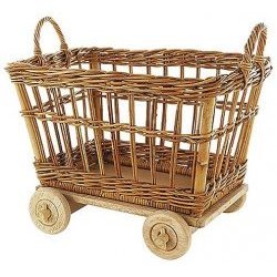 These small wicker baskets make the perfect toy storage solution a baby or child's room, but don't limit them to just one room in the house! Handwoven of natural rattan, these unique wicker baskets actually roll on wooden wheels. In addition to toy storage, the decorative wicker baskets also hold plants, books, magazines or towels. Occasionally there is a residual odor on rattan products. This smell usually disappears. If you experience this, we suggest that you just expose the item to air, preferably outdoors, or simply rinse the item. If the odor does not go away, just notify our Customer Service Department. .